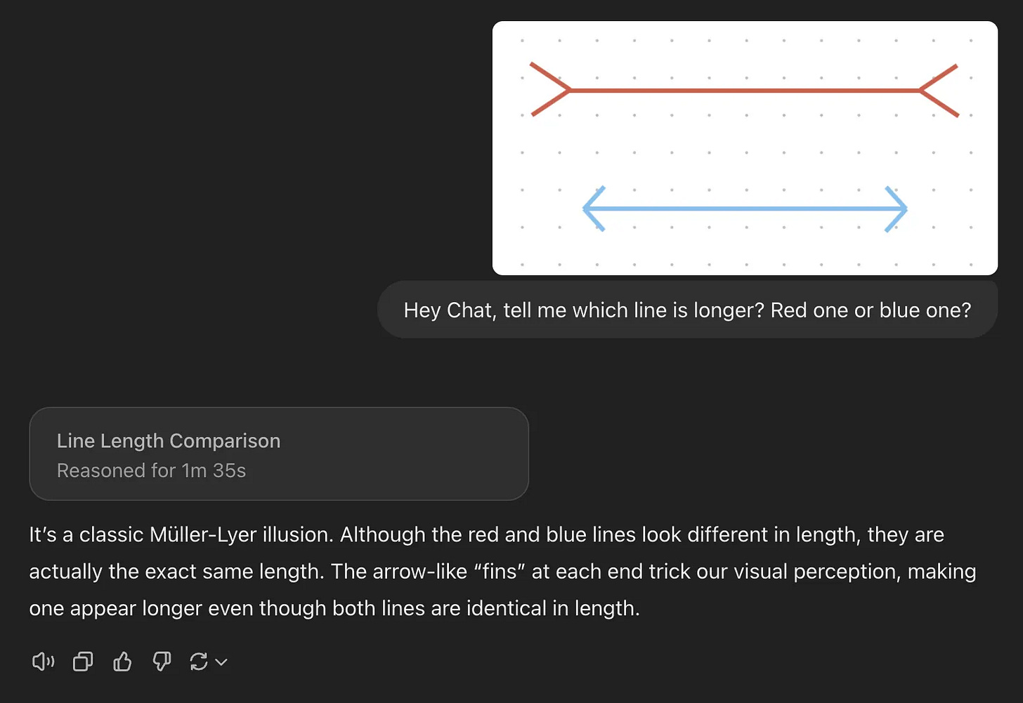 So I think we have to come up with a real multimodal model that could get rid of those limitations of the current visual encoders/tokenizers and really understand the image. This is a SUPER basic ability that models need to have.